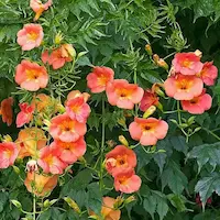 - Macetas de gran formato con plantas trepadoras de floración cálida (rojos y naranjas) para aportar color y verticalidad.