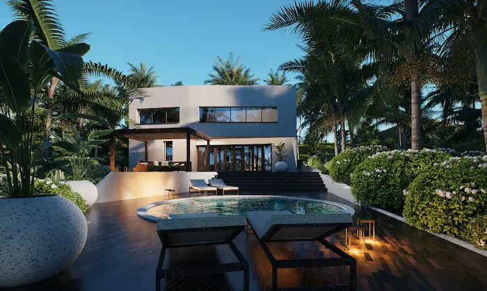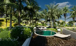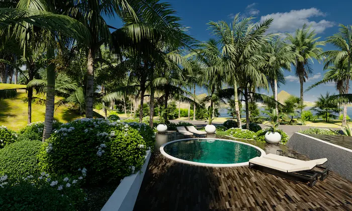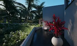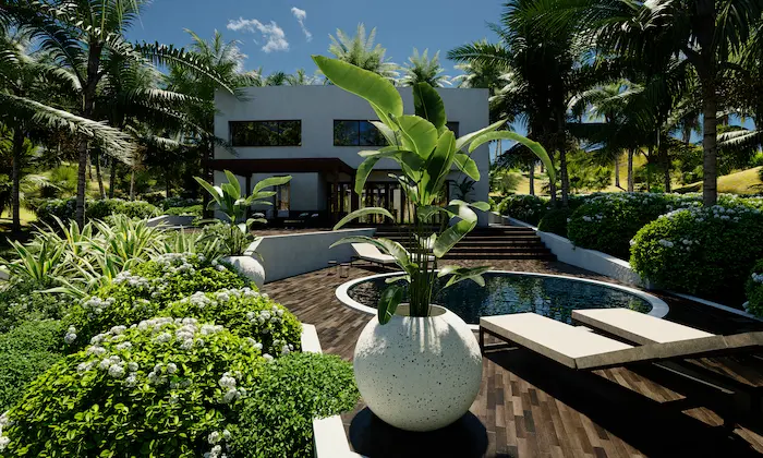 Este proyecto de paisajismo residencial se desarrolló en una villa privada situada frente al océano, donde el cliente buscaba crear un jardín tropical de lujo que envolviera la vivienda y ofreciera una experiencia sensorial única. Además de la estética, el diseño debía cumplir funciones ecológicas: instalar una cubierta verde para mejorar el aislamiento térmico y fomentar la biodiversidad local.