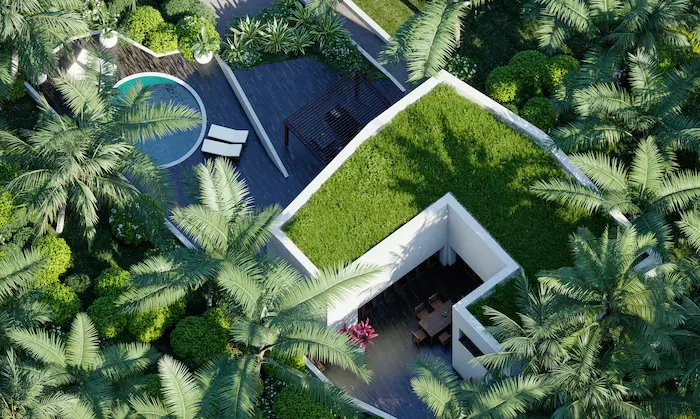 Solución: Jardín tropical envolvente con cubierta verde ecológica
